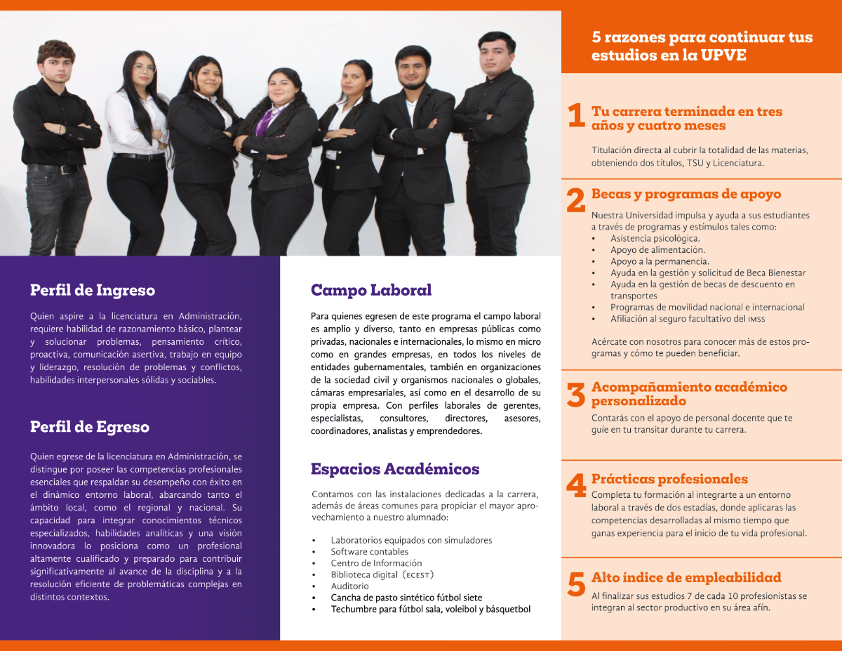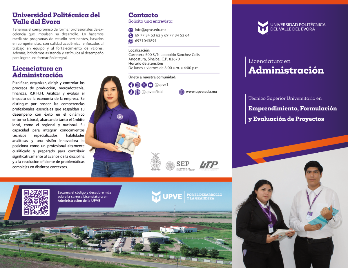 Al estudiar tu Carrera Profesional en la UPVE, tienes la oportunidad de obtener dos Títulos Profesionales. Al finalizar el 6to cuatrimestre, recibirás el título de Técnico Superior Universitario (TSU) en Emprendimiento, Formulación y Evaluación de Proyectos, y al concluir el 10mo cuatrimestre, obtendrás tu Título de Licenciatura en Administración.